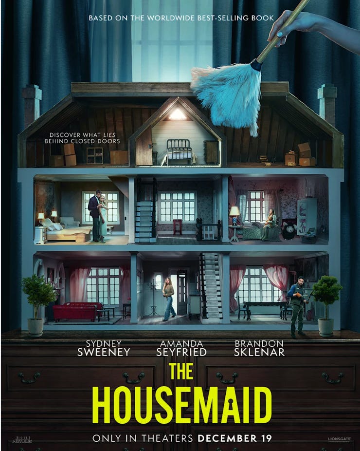 I watched The Housemaid on a red eye to London last week. A suburban family—wealthy, white, and gorgeous—appears perfect from the outside, but behind closed doors, there is enough sex, violence, and scandal to set the neighborhood ablaze. The central tension of the story stems from the dissonance between the perception and reality of their domestic life.